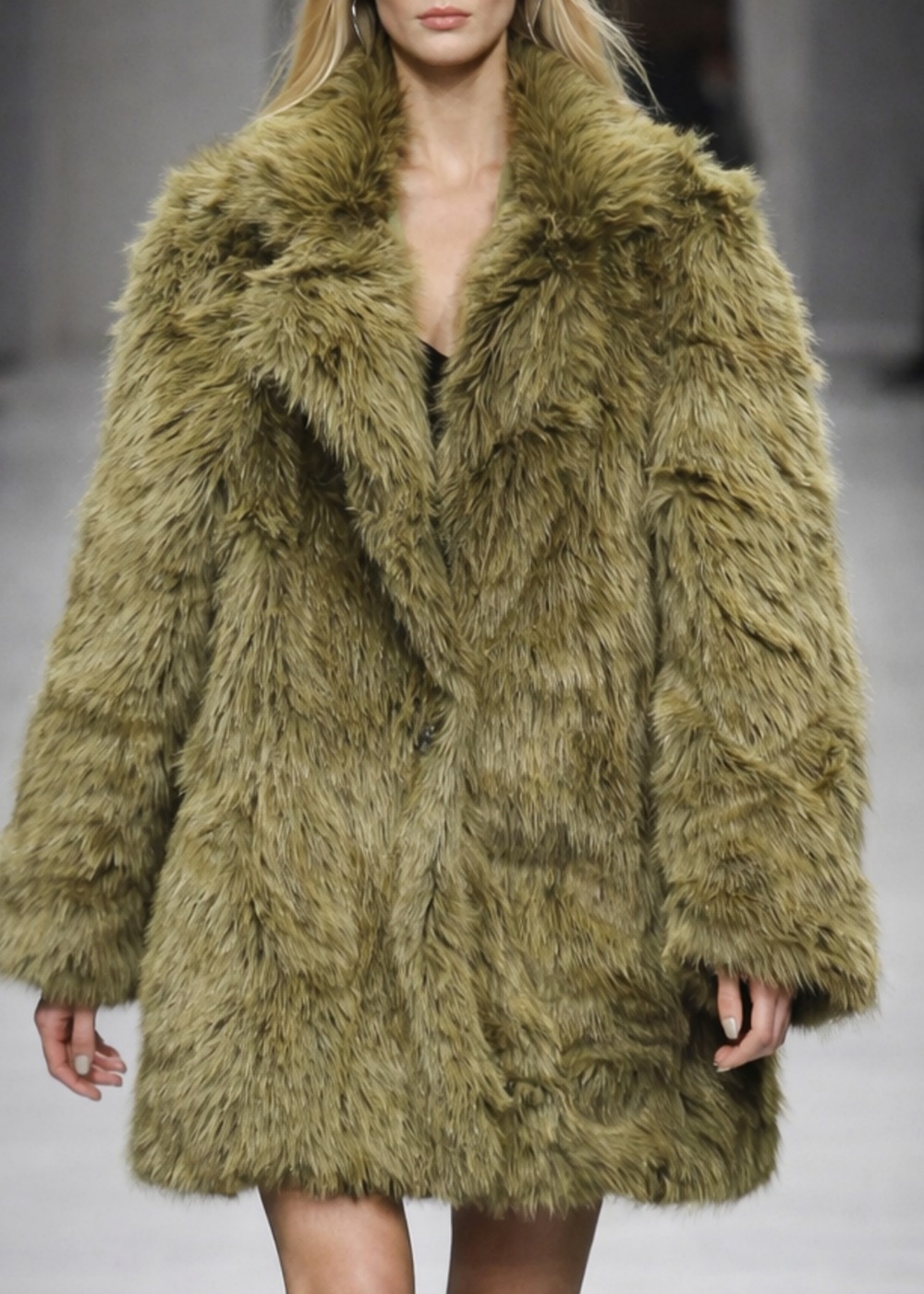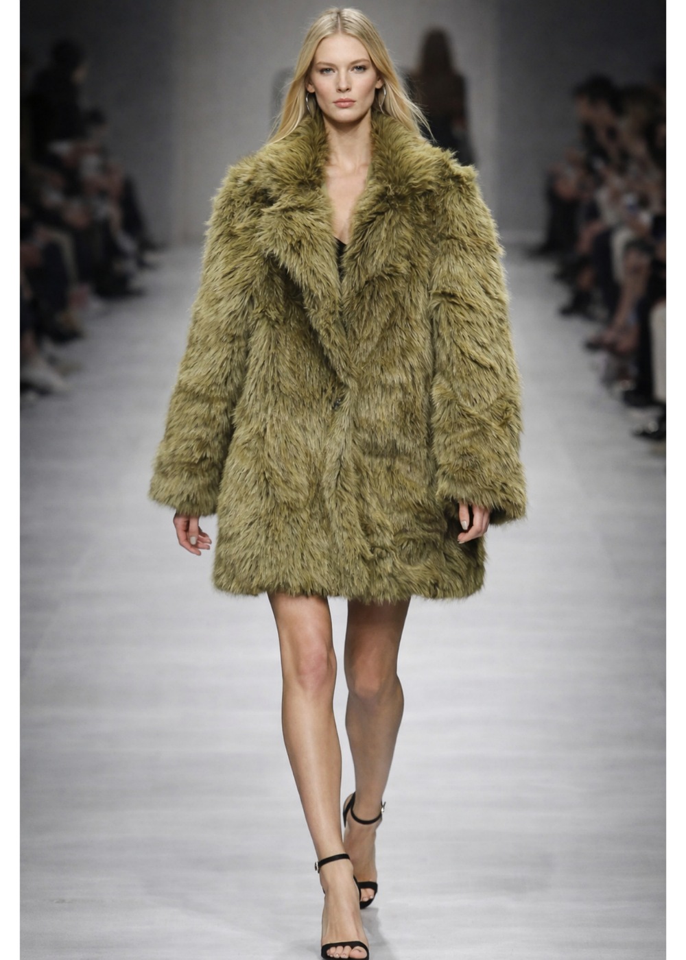 Αναβάθμισε το χειμερινό σου στυλ με αυτό το εντυπωσιακό faux fur παλτό σε olive απόχρωση. Με πλούσια υφή, άνετη γραμμή και elegant μήκος πάνω από το γόνατο, αγκαλιάζει το σώμα χαρίζοντας πολυτέλεια και statement χαρακτήρα.Ο μεγάλος γιακας προσθέτει fashion-forward αισθητική, ενώ η απαλή υφή το καθιστά ιδανικό για καθημερινές αλλά και βραδινές εμφανίσεις. Συνδύασέ το με φορέματα ή total black looks για απόλυτο chic αποτέλεσμα.